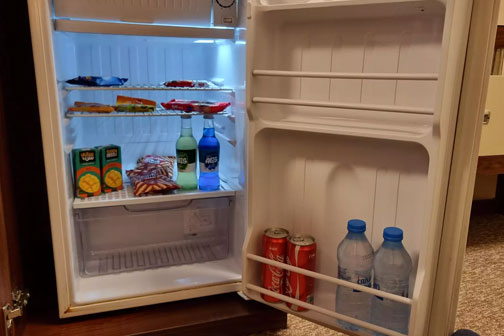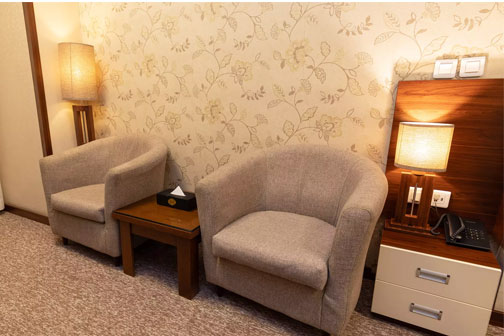 بخش پذیرایی و استراحت: یخچال، مینی بار (با هزینه)، چای ساز اختصاصی، مبلمان راحتی، دراور، آباژور و تلویزیون.