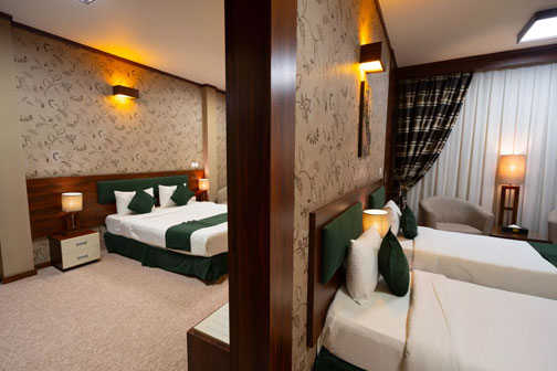 اتاق های استاندارد (دو، سه و چهار تخته): با چیدمانی دلباز و امکانات کامل برای تجربه اقامتی بی نقص.